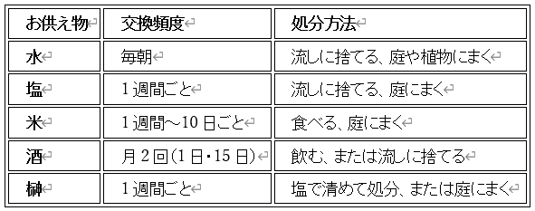 ◆ お供えの交換頻度と処分方法