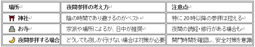 ➡ 夜間の参拝は、暗い場所を避け、周囲に人がいる神社・お寺を選ぶ